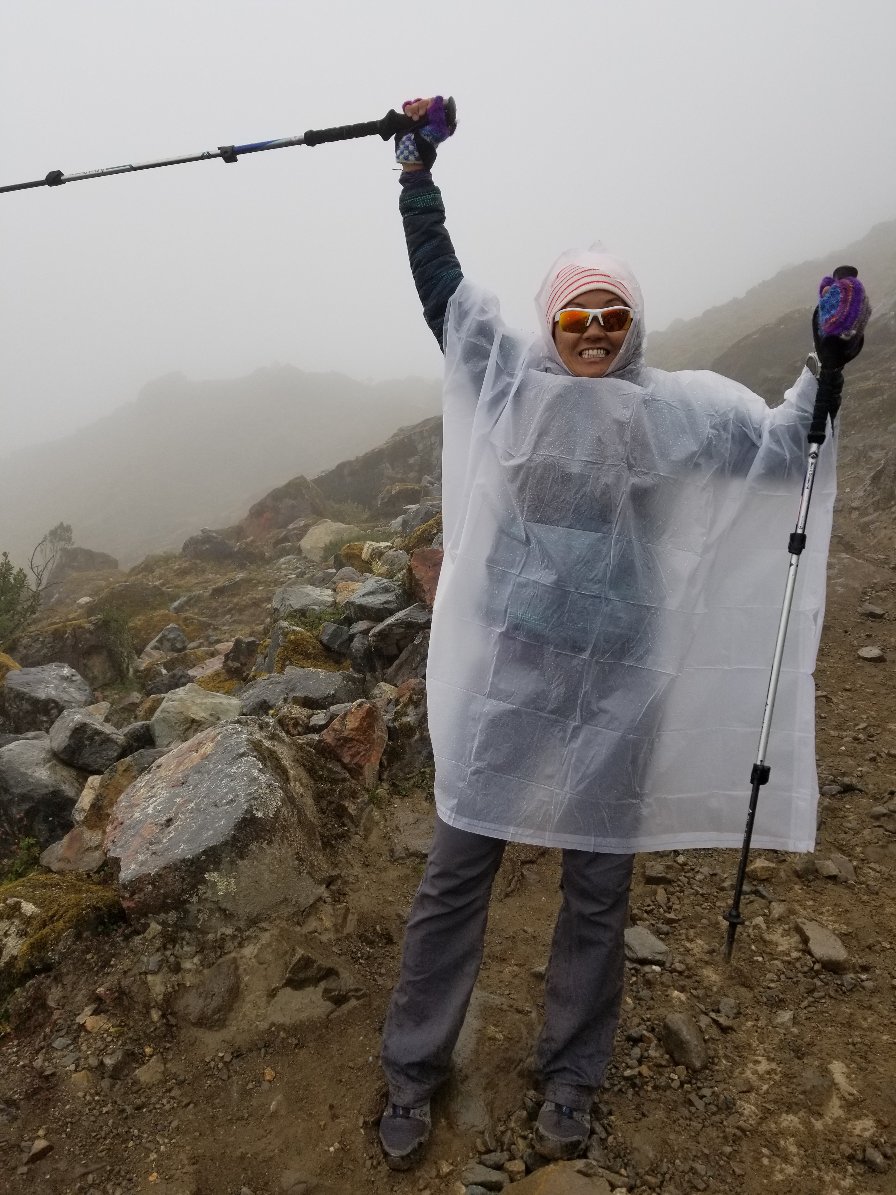 Thankfully, I didn’t have any nausea and was able to power through the rest of the first day. Several didn’t make it out of their tents for supper that night. We learned that several of our cohorts took the altitude meds (Diamox or Acetazolamide) and in comparison to us, they were doing much better. Despite the downpour we still had a lovely tasty supper, a hot meal is always comforting. Followed by what could have been a rather miserable night. It was cold and rained most of the night, but all was made better with a lovely gift of a hot water bottle delivery by our outfitters. This made our sleeping bags quite toasty and the night much more comfortable.