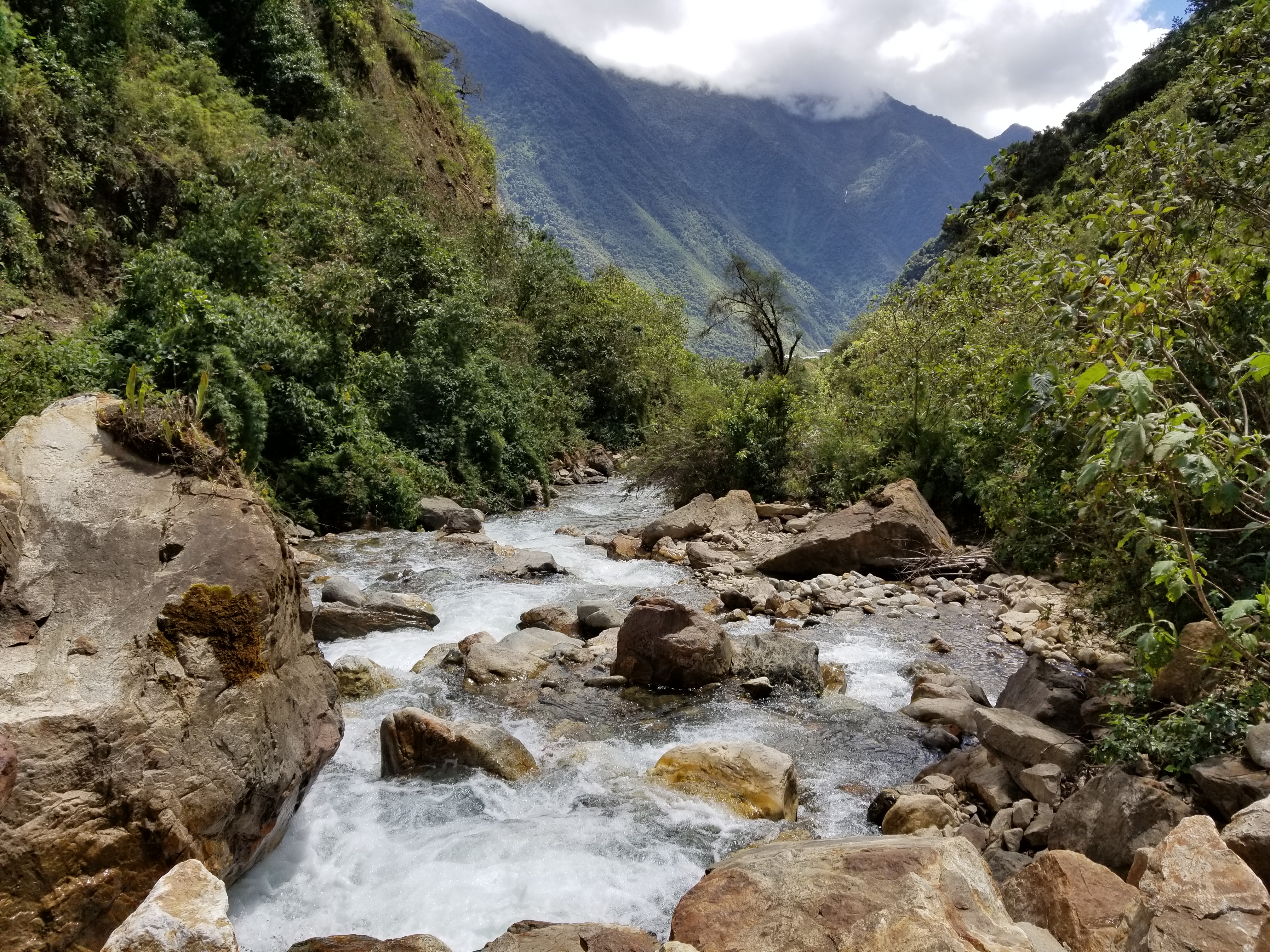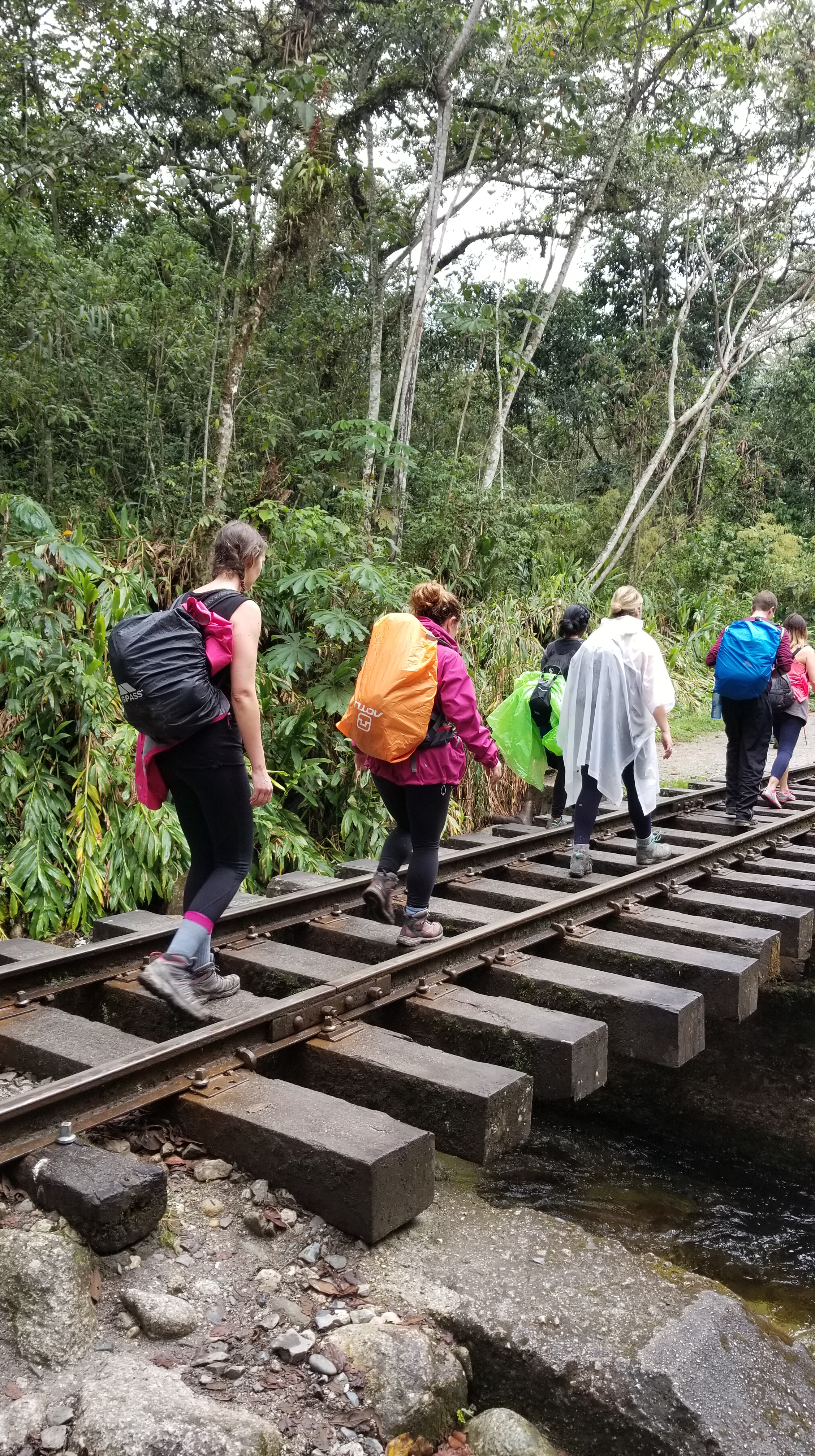 Day 4 (15km = 9.3 miles) – This was my least favorite day of hiking in that it was enroute to Aguas Calientes, where the rest of the Machu Picchu tourists would be. Thus far we had been hiking for 3 days without running into another group. The tranquility and beauty of the sites enhanced by the lack of human encounters. A lot of the hike was over train tracks that seemed to go on forever.