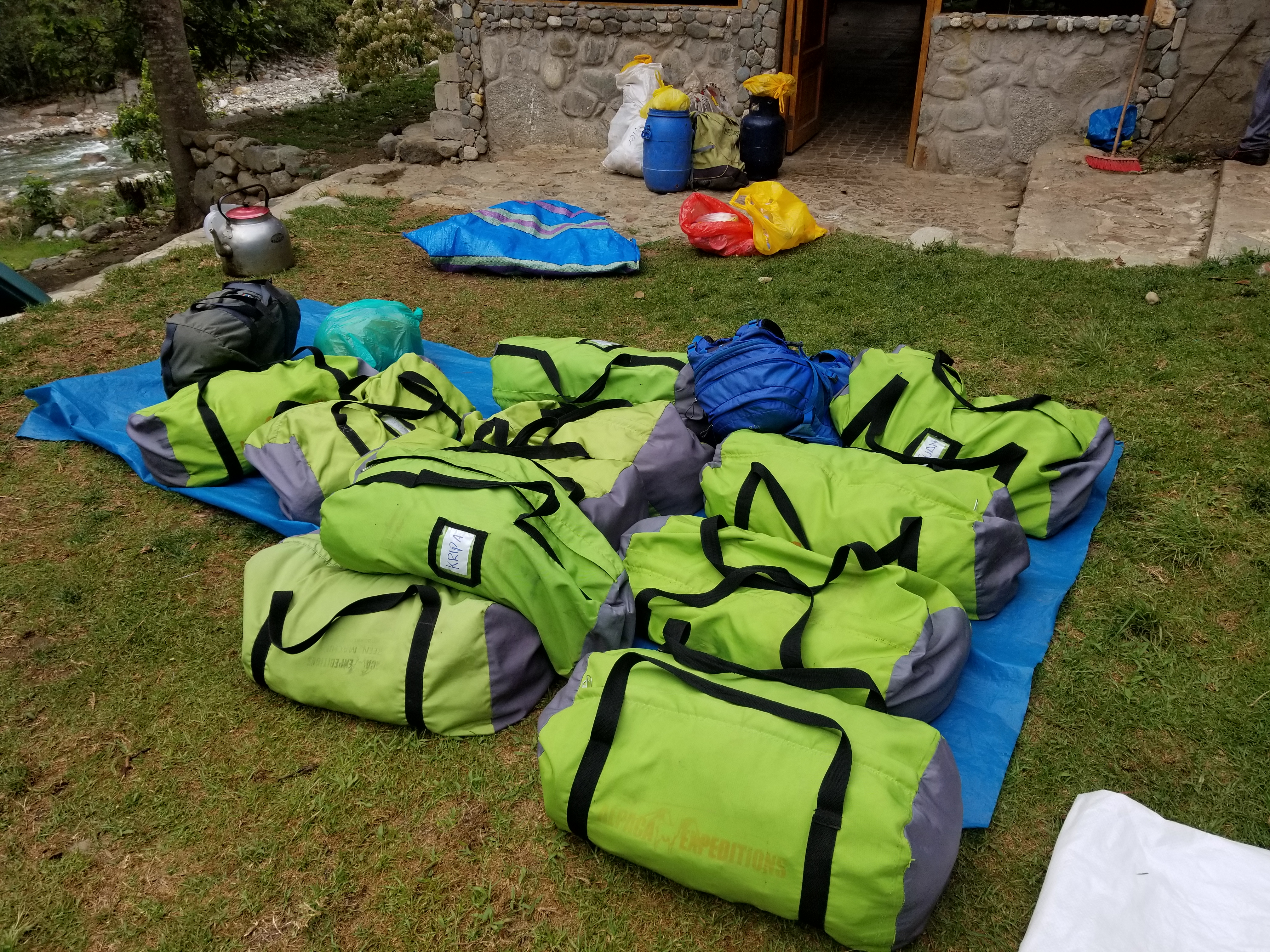 Tip: most hotels in Cusco are very familiar with trekkers coming and going. Thus, leaving a bag behind for later is something they do quite often. We packed what we thought we would need for 5 days into the green duffle bags provided by Alpaca Expeditions. We stored the rest of our bags with the hotel until our return.