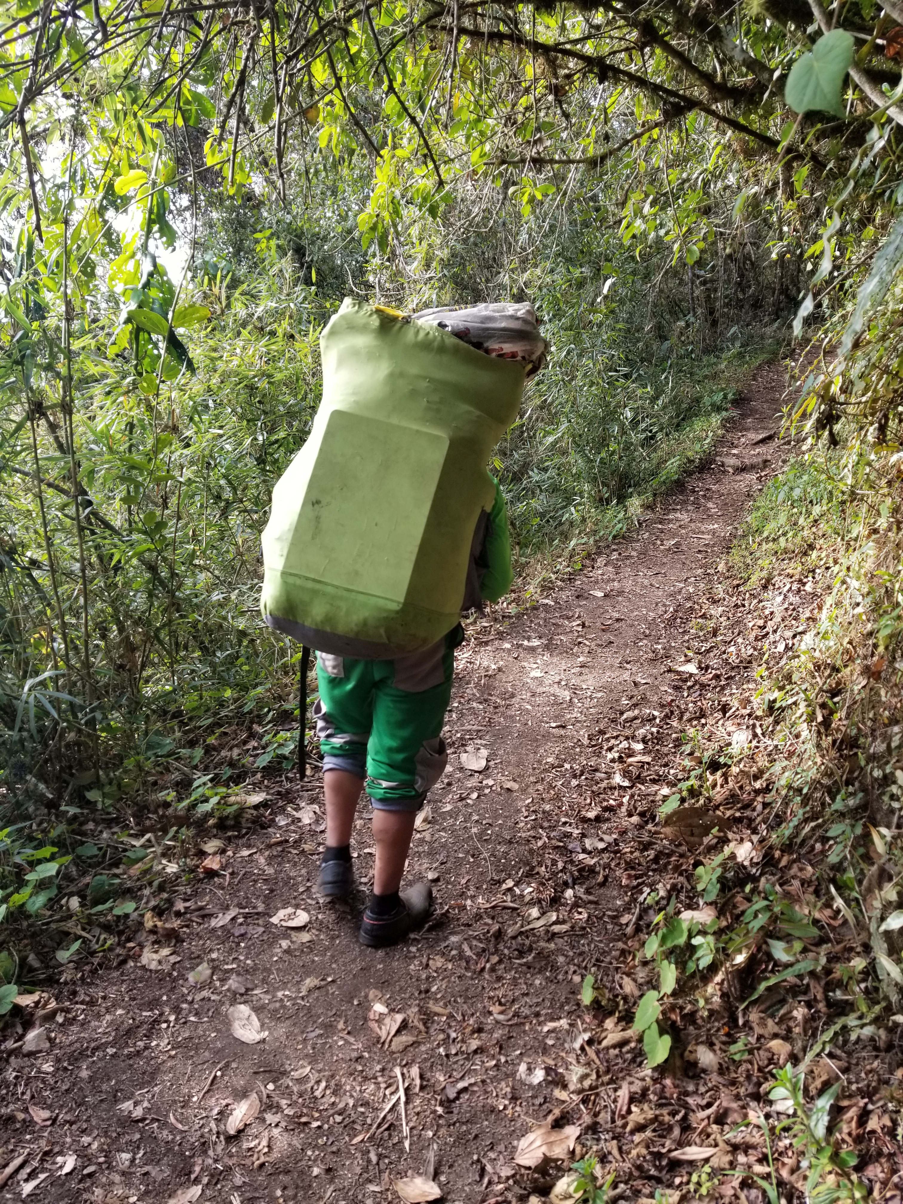 The rest of the hike to Llactapata was fun, with a little rain, and actually being passed by the porters was humbling. Up until this point we had not seen any of the porters as they were usually well ahead of us. Lugging all our belongings to the next campsite. These local men from small villages were amazing to see, carrying towering packs filled with cooking supplies, camping mats and duffle bags, etc. literally running up the hills blowing by us like a flash.
