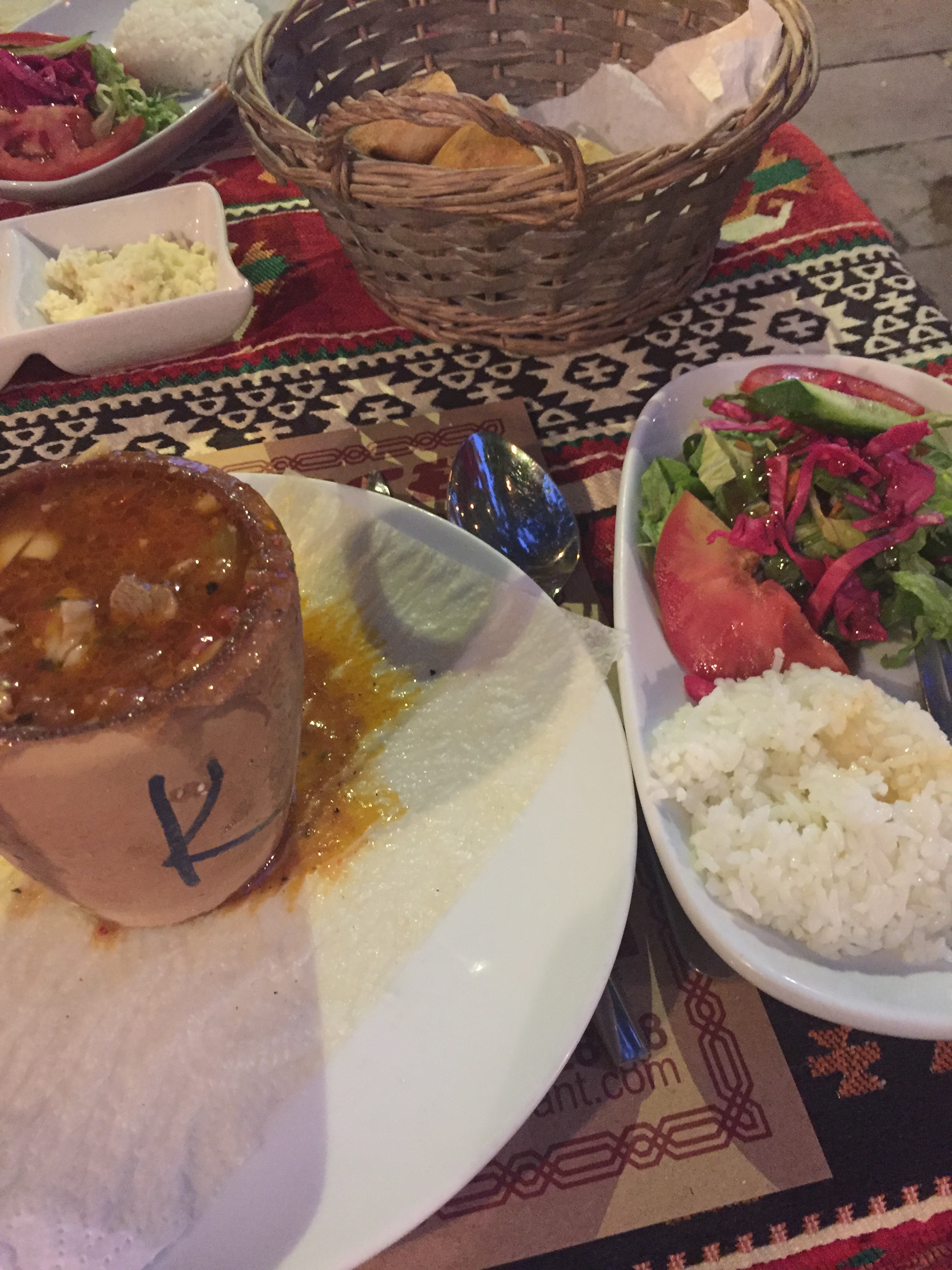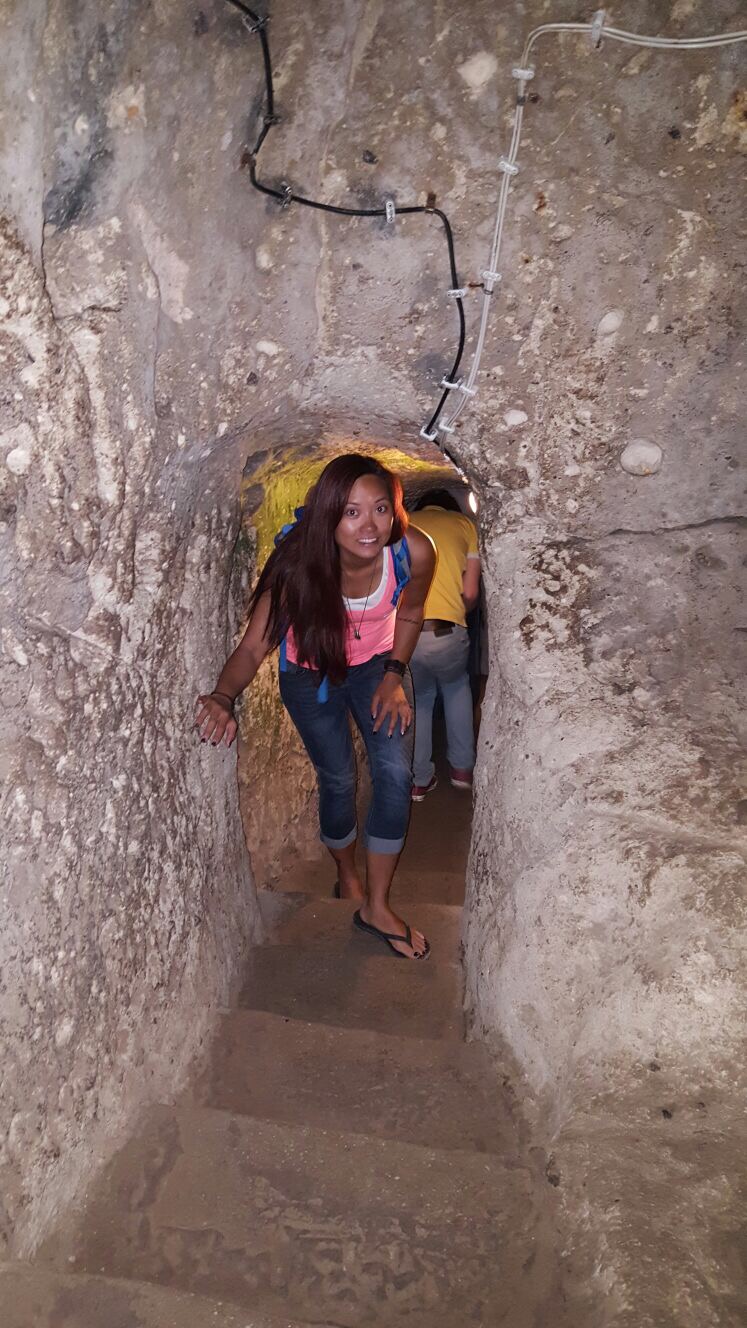 Derinkuyu Yeralti Sehri (Underground City) – another local attraction that was a shortish cab ride away (40 minutes). This area was at one point inhabited by up to 20,000 people and was as deep as 18 storeys underneath Capadoccia. Now it’s a unique attraction that allows tourists to tour up to 8 floors down. Narrow caverns and rooms not for those with a hint of claustrophia. Highlight for me was the best meal in the area by a small food stand just outside the attraction suggested to us by our friendly cab driver. Had several items for the first time made special by the lovely woman handmaking our meal. She made us Manthi – a traditional turkish dumplings in a yogurt sauce and Gozleme – a turkish stuffed flat bread with spinach and feta. Absolutely delicious.